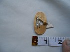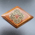 Vintage Mid Century Modern Polished Wood Brooch Pin Gold Tone Geometric