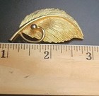 Vintage Gold Tone Brooch Pin Leaf Feather Mid Century Modern Beautiful