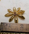 Vintage Mid Century Modern Flower Daisy Brooch Pin Gold Tone Heavy Statement