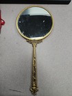Vintage 24k Gold Plated Hand Mirror Mid Century Vanity Piece Ornate Roses Floral
