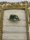 Gold Tone Green Rhinestone Ring Size 7 Christmas Holidays Emerald Hues Vintage