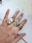 Ring Lot Big Cocktail Rings Faux Pearl Silver Ring Large Costume 3 Pcs Size 8
