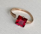 10k Yellow Gold Red Glass Ring Adjustable Band Size 4.75 Uncas Ladies Vintage