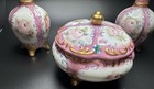 Vintage 3 Pc Pink Rose Gold Vanity Set Hand-painted Porcelain