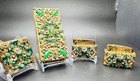 Vintage Gold Tone Green Rhinestone Vanity Set – 2 Compacts & 2 Lighters