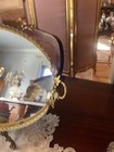 Vintage Oval Mirror Vanity Tray Metal Gold Trim Ornate Shell With Scroll Border