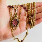 Alsta Watch Necklace Vtg Gold Open Bezel Purple Crystal Victorian Style Multi