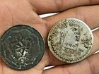 Vintage Rare 2 Pc Metal Goddess Laxmi Baba Amaranth Good Luck Token Coin Old