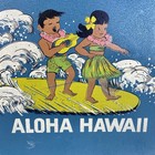 Aloha From Hawaii Wall Hanging Vintage Art Tiki Surfers Flower Ukulele Hula Girl