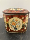5"high Vtg/uk Octagonal - Floral Hinged Tin Box W/metallic Gold Interior, Preown