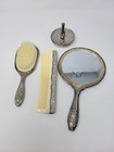 Rare Vintage Silver Plated Vanity Mirror Brush Comb & Ring Holder Set Euc