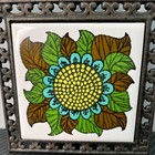 Vtg Holt Howard Flower Tile Green Brown Metal Trivet 1970s Japan Ceramic Kitsch