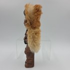 Vintage Inuit Eskimo Hand Carved Wood Face Doll Real Fur W/description Card