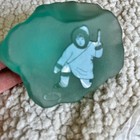 Inuit Hand Carved Hard Stone Plate Plaque Eskimo Singed Siku Vtg Mid Century 7”