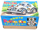 Vintage Japan Tin Asc. Friction Siren Police Car + Original Box, 9.75", Works