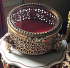 Vintage Gold Jewelry Casket Box Ormolu Filigree Beveled Glass