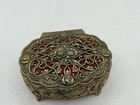 3" Vintage Oval Filigree Ornate Jewelry Trinket Box Red Velvet Lined Hinged