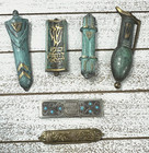 Vtg 50s Lot Of 6 Brass Mezuzah W/ Shin Jewish Made In Israel Judaica W/ Scrolls