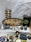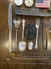 Vintage Rare Junk Drawer Lot Silver Plated Dust Pan & Brush, Watches, Coins,