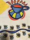 Vintage Mcm Kitchen Dish Towel W Button - Colorful Coffee Cups - 16x26