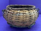 Large Reed And Wicker Basket Hand Woven With Pedestal Mcm Beauty Vtg 13”