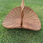 Vtg Xl 32” Handwoven Wicker Rattan Cane Gathering Basket Swing Handle Trug Style