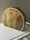 Vintage Travel Train Cosmetics Size Suitcase Tan W/leather On Top Ci 1940-1950's