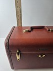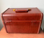 Vintage Red Samsonite Leather Train Traveling Case Shwayder Bros Carry On 1950s