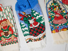 Vintage Unused Christmas Kitchen Towels Crochet Terry Cloth Rabbit Tree Lot