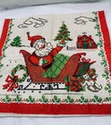 Vintage Linen Tea Towel Christmas Santa Sleigh