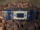 Vintage Italian Lipstick Case Holder Mirror Blue Black Gold Made In Italy