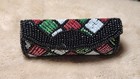 Vintage Beaded Lipstick Case Holder W/ Mirror & Snap Closure Multi Colors. 3.5"