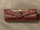 Vintage Ornate Lipstick Case Travel Mirror Holder Compact Red Gold Tin Pouch