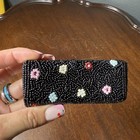 Small Vintage Style Black Beaded Lipstick Case Holder W/ Mirror & Snap Closure