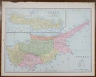 Vintage 1900 Cyprus & Crete Atlas Map 14"x11" ~ Old Antique Original Nicosia