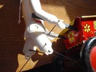 Vintage Marx Tin Wind Up Toy Farmer In Cart Pulled By Donkey Marked Mar