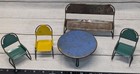 Vintage Tin Metal Toy/doll Chairs & Bench Patio Furniture Green Blue Yellow
