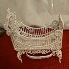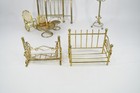 Vtg Dollhouse Miniature Furniture Gold Tone Wire Nursery Set Cradle High Chairs