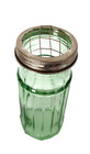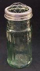 Vintage Depression Glass Green Flower Vase With Metal Wire Frog Lid Cheese Shake