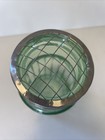 Antique Green Glass Flower Frog Vase W Metal Grid Insert 6in
