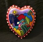 Vintage Cancun Mexican Folk Art Heart Trinket Box Signed K Isidoro Mex
