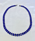 Vintage Sterling Silver Curved Blue Lapis Lazuli Inlay Hinged Link Necklace - 18