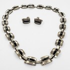 Vintage Taxco Mexico Sterling Silver Necklace Screwback Earring Set Black Enamel
