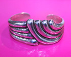 Vtg 925 Tf Taxco Designer Sterling Silver Wave Cuff Bracelet Signed Mexico