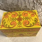 Vtg 70s Recipe Box Flower Power Avon Yellow Orange Green Retro Mod Kitchen Metal