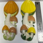 Vintage 70s Ceramic Mushroom Wall Pocket Planters Set Orange Yellow Retro Read