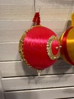 4 Vintage Mid Century Satin Sheen Christmas Ornaments Hand Decorated Push Pin