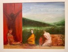 Mid Century Pretty Women Painting Abstract Expressionist Vintage