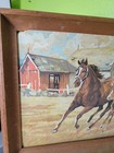Vtg Mid Century Modern Paint By Numbers Mcm Farm Horses Frame Art Painting