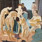 Vintage Figural 50s Mid Century Encaustic Painting Modern Voelkel Stylized Art B